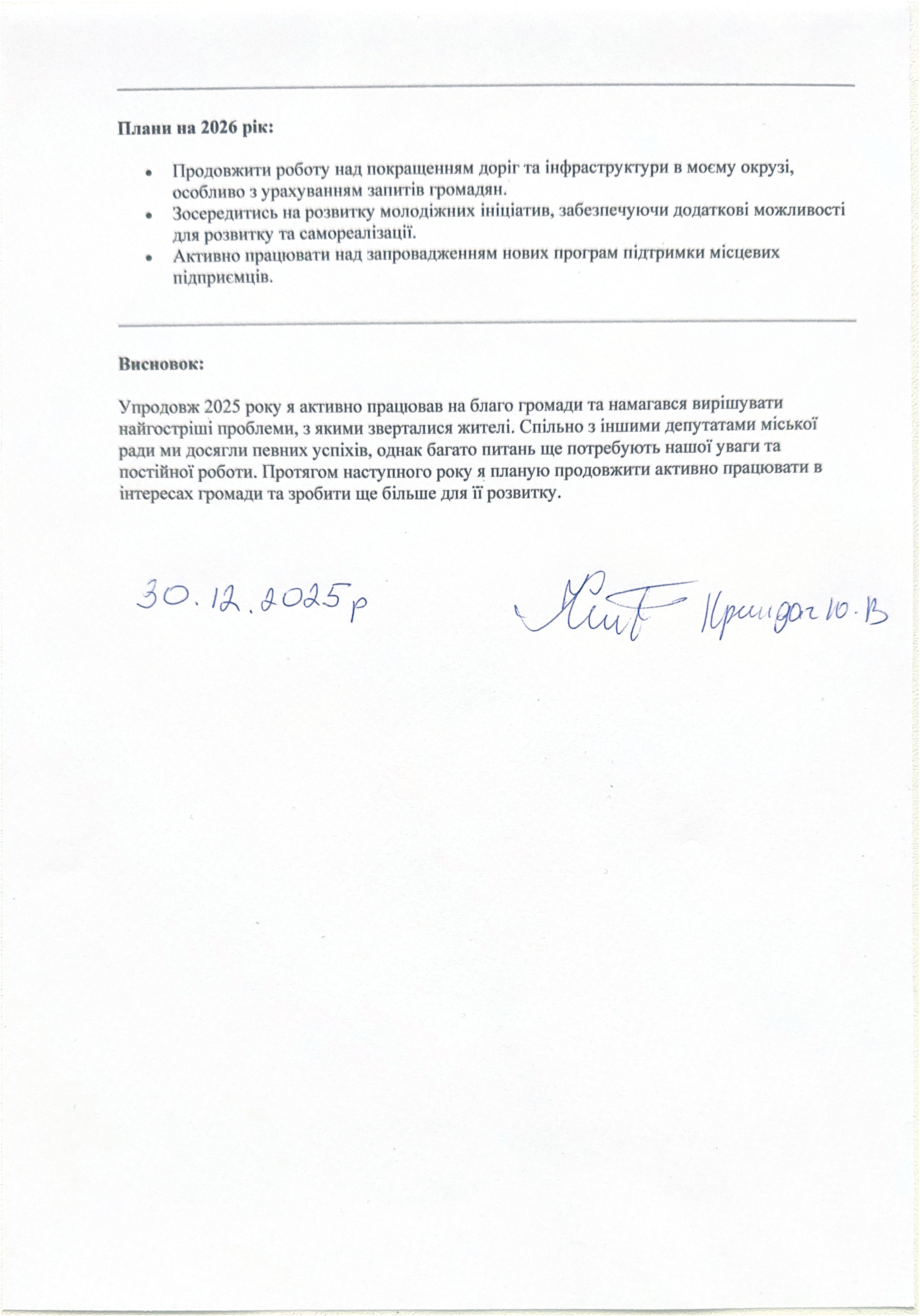 Звіт депутата Решетилівської міської ради VIII скликання за 2025 рік Криндача Юрія Володимировича